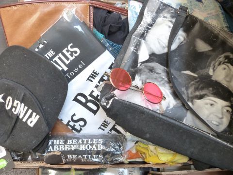 A collection of Beatles decorated textile items to include t-shirts, bed linen, handbags, wall hangings and a Ringo baseball cap