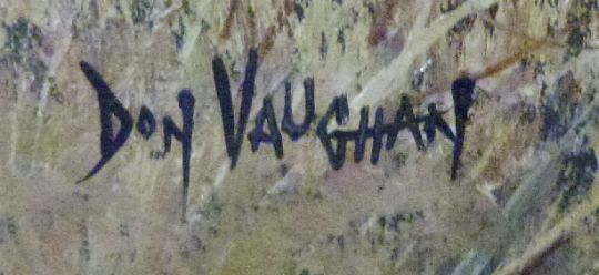 Don Vaughan 20thC oil on canvas horses fording a river village with bridge, signed lower left and titled verso 'Near Woking, Tilford Surrey', 49 x 100cm