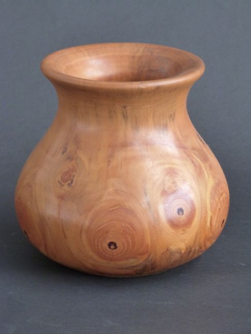 Turned treen monkey puzzle vase by Dick Mather of Bath, H20cm