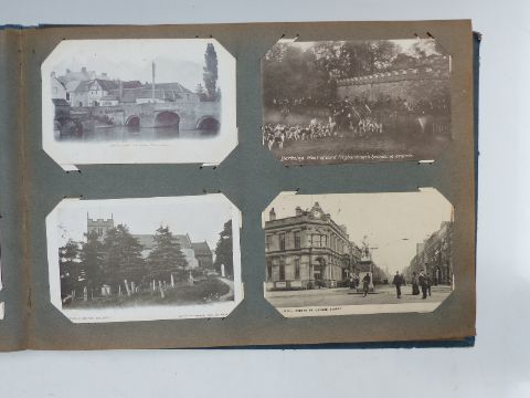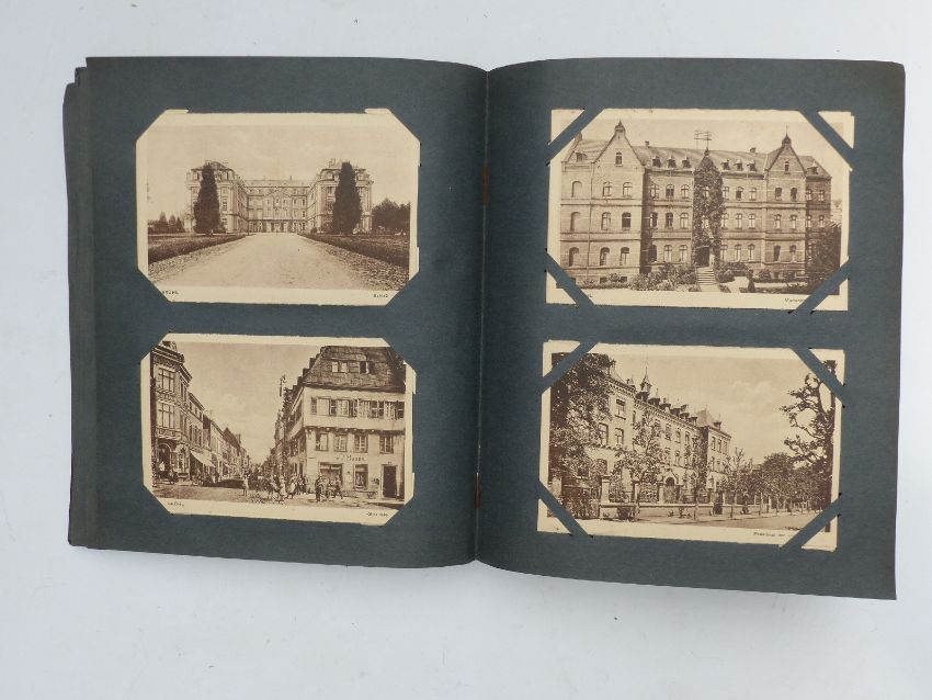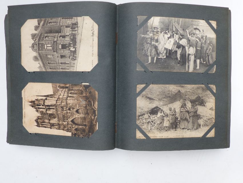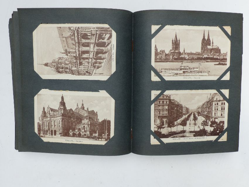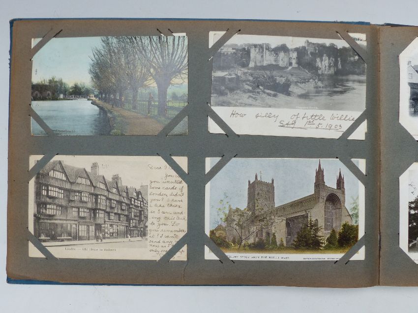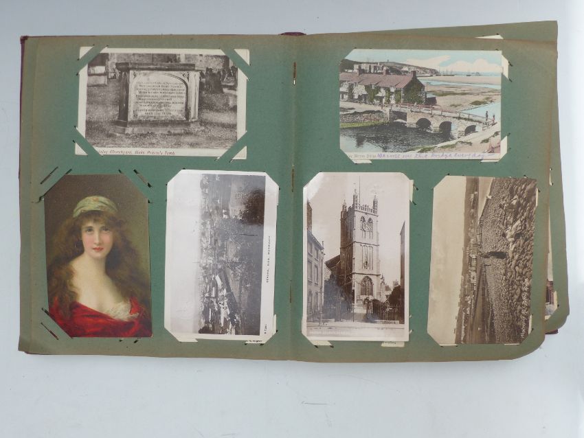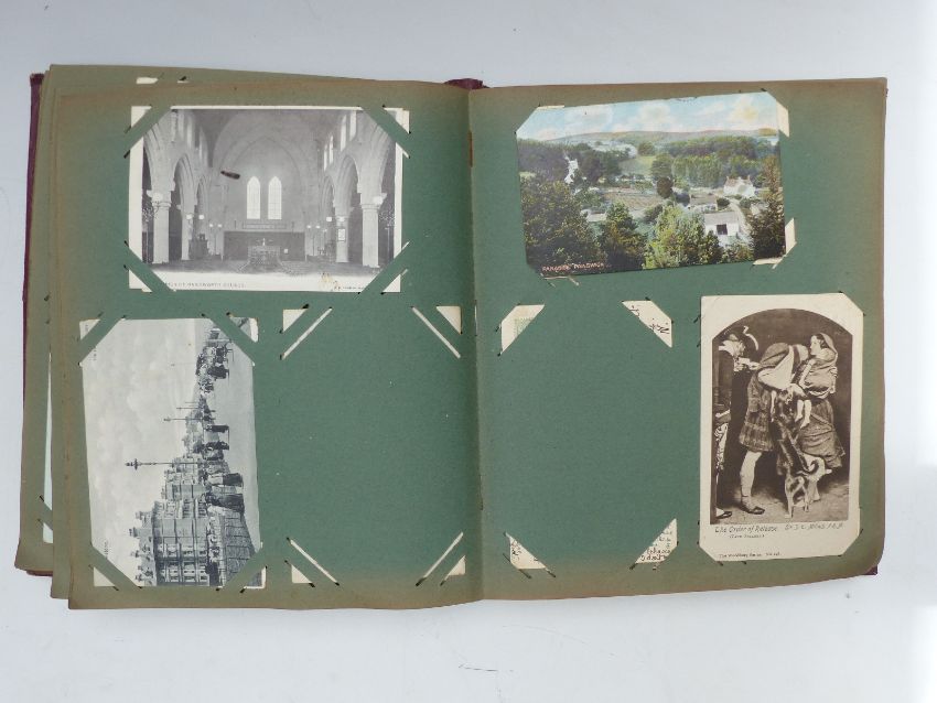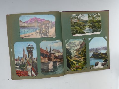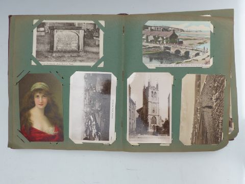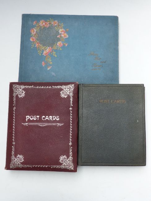 Three postcard albums Edwardian and later, the first album entirely European buildings and other topographical cards (190 plus), another dated 1907 inside cover Victoria British Columbia and including Canadian Rockies railway, yacht race Lake Michigan, Seattle, RMS Baltic White Star Line, Worcester, Liverpool, New York, Exeter, Bedford, Nailsworth, Woodchester, Stroud, Rodborough Fort, Cowes, Amberley, Monmouth, Minchinhampton, Gloucester, Cirencester, Rothesay, Hucclecote, Paradise Painswick, Bromyard, Wickwar, humorous and valentine (170 plus cards); the final album entitled From Far and Near dated 1904 includes London, Bristol, Bath, Folkestone, Malvern, Sharpness, Gloucester, The Ocean at Stonehouse, Tewkesbury, Berkeley Hunt, Cheltenham, Nailsworth etc. approximately 160 cards, 520 plus in three albums