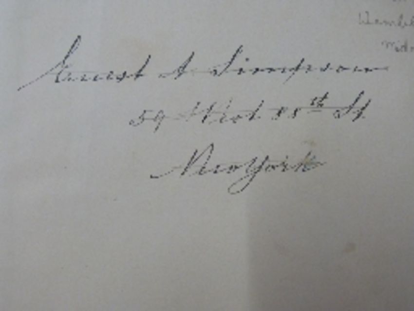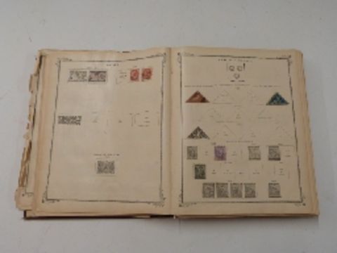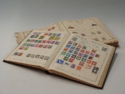 A 19thC album, once the property of Ernest Simpson (husband of Wallis) with signature and his address, many stamps removed but some useful remainders including Cape Triangles x 2, together with a Triumph album of all world stamps, up to 1935