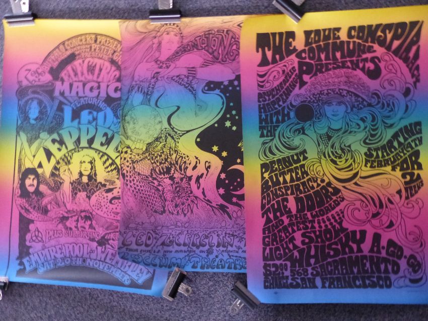 A collection of good quality reproduction 1960s posters including Jimi Hendrix, Led Zeppelin, Love Conspiracy, Pink Floyd, Rites of Spring etc
