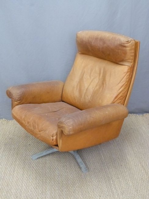 Retro leather swivel chair, probably 1970s Italian, with leather 'stitched' decoration, raised on steel quad base