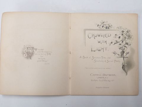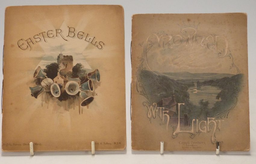 Two Victorian Illustrated booklets Crowned With Light Castell Brothers printed in Bavaria with colour chromos + half-tone illustrations, Easter Bells (Poetry) Griffith Farran illustrated in and black & white both in original pictorial card covers (2)