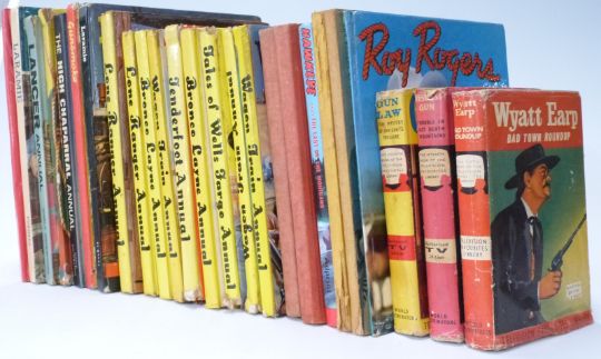 Western Cowboy Annuals 1960s The Lone Ranger, Wagon Train, Bronco Layne, Roy Rogers, Hawkeye, Tales of Wells Fargo, Hopalong Cassidy, Tenderfoot, The Cisco Kid, The High Chaparral, Laramie, Gunsmoke (25)