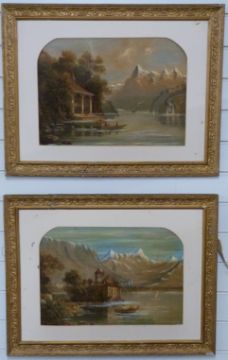 Pair of possibly Swiss maritime landscapes, approximately 33 x 47cm