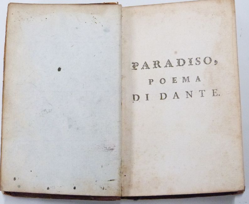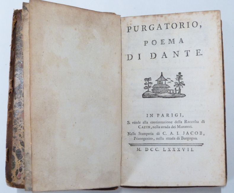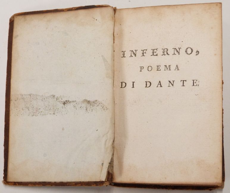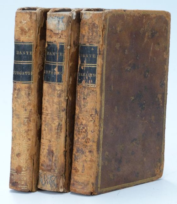 Dante Alighieri Works: Inferno, Paradiso and Purgatorio Poems Di Dante in Parigi 1787 in 3 volumes engraved title devices and two illustrated headpieces full tan calf with triple gilt ruled borders black leather title labels and gilt page edges