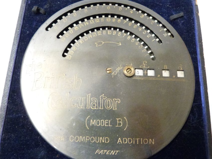The British Calculator model B for compound addition with £ s d readings, in original box