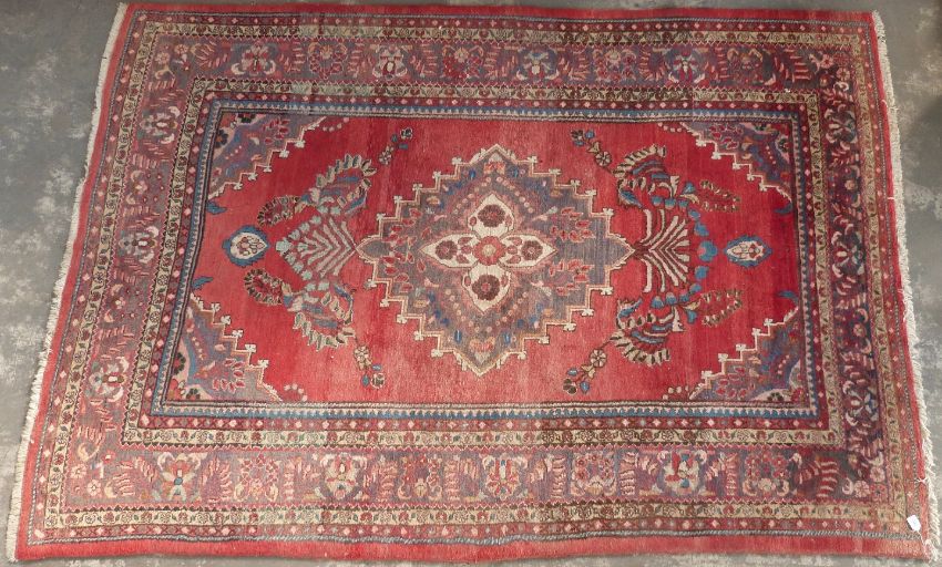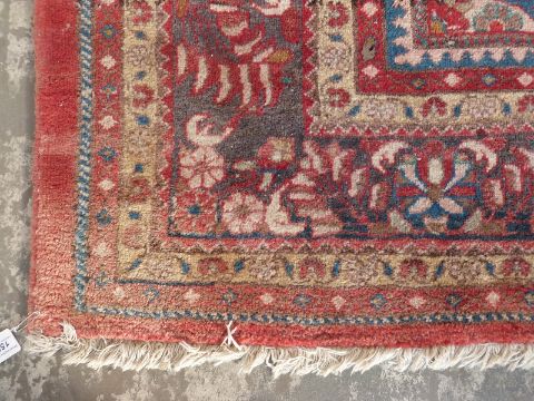 Turkoman woollen rug on wine ground, 300 x 210cm