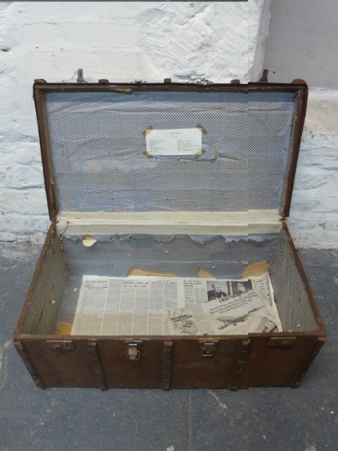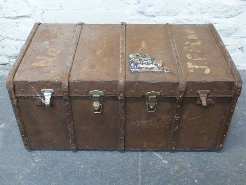 Metal bound steamer or similar trunk W92cm