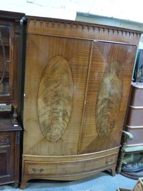 Victorian mahogany bow fronted wardrobe with crossbanded and inlaid detail