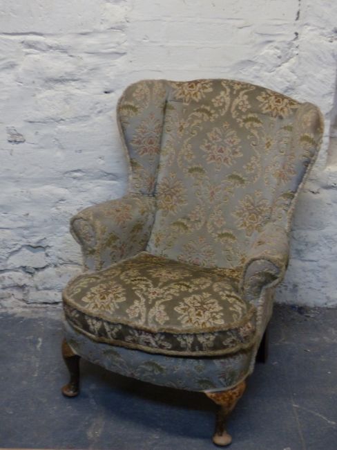 An upholstered wing back armchair belived to be made by the same manufacturer as Titanic furniture.