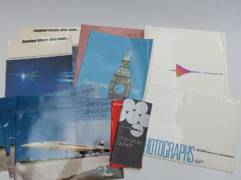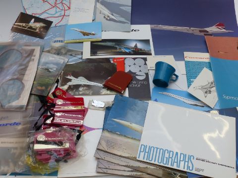Concorde ephemera including promotional sales packs, print, luggage labels, cup, pop up models, photographs of production etc