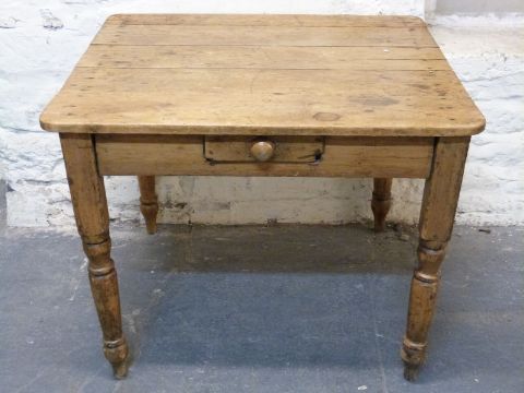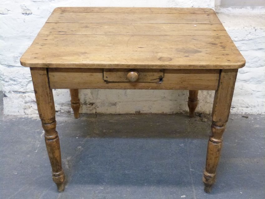 A 19thC pine kitchen table with single drawer