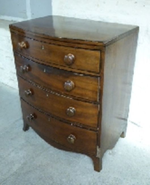 A small Victorian mahogany bow fronted chest of four graduated drawers, W75 x D46 x H95cm