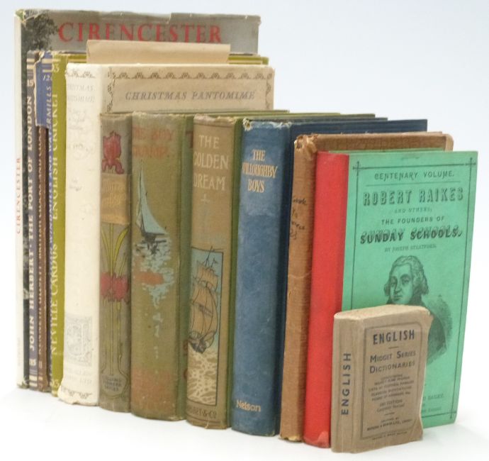 Guide to Cirencester 1889, Robert Raikes by Joseph Stratford original printed boards, Illustrated Children's Adventure Stories, Cricket, Midget Dictionary (13)