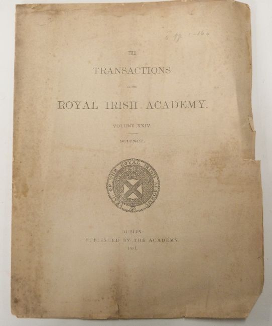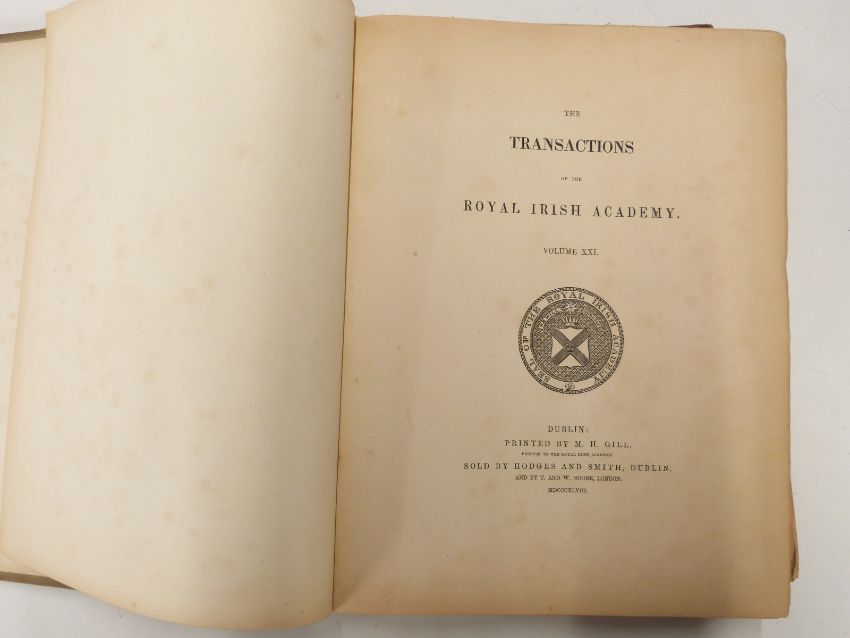 The Transactions of The Royal Irish Academy 1848 to 1856 volumes 21, 22 and 23 with numerous engravings and charts & diagrams, one volume in cloth backed boards, the others in wrappers