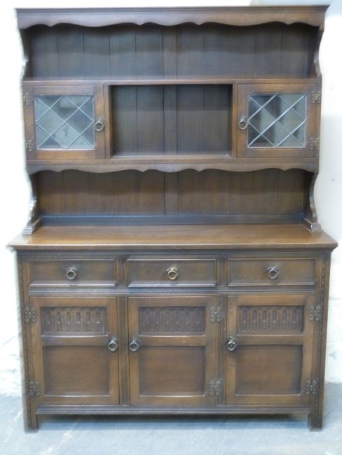 Old Charm style oak three drawer dresser, W138 x D43 x H138cm