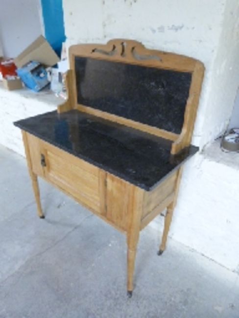 A washstand with marble back and top, W92 x D44 x H114cm
