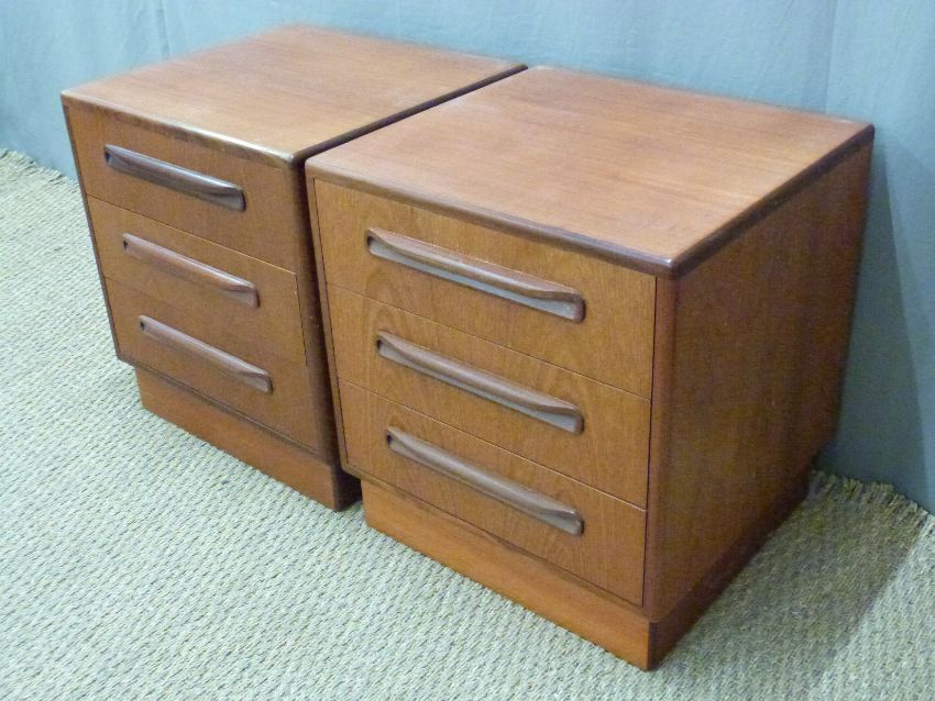 Retro G Plan pair of bedside chest of three drawers, W48 x D45 x H52cm