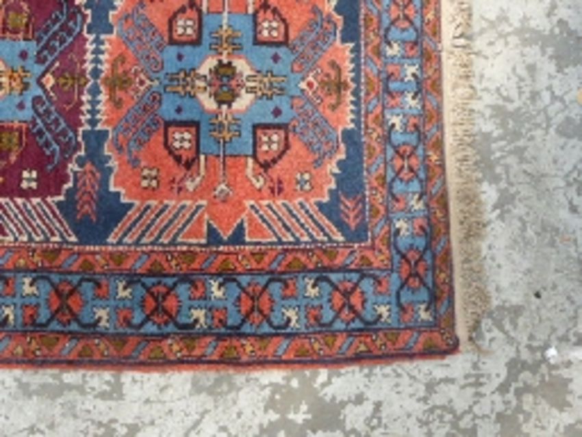 Turkoman woollen rug or runner with pink guls, 330 x 90cm