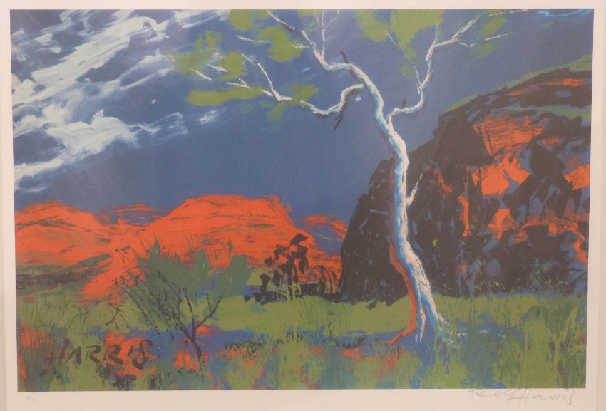 Rolf Harris signed limited edition (79/95) print Australian landscape, approximately 40 x 60cm