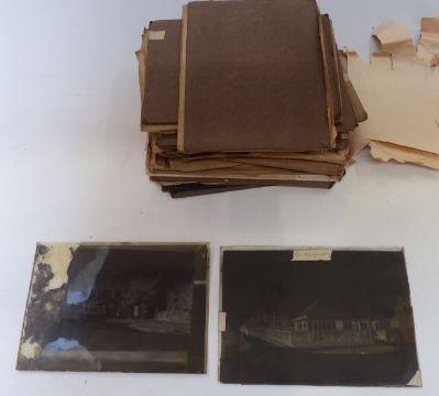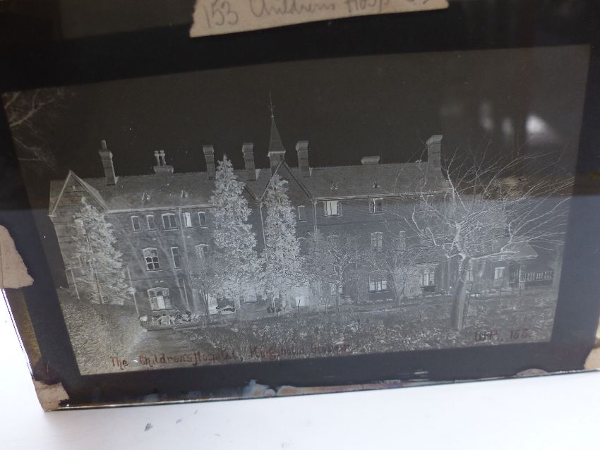 A collection of photographic glass negatives, images include local interest Speech House Road with station and GWR coaches, Children's Hospital and Parish Hall, Kingsholm, Gambier Parry Memorial Dispensary, Denmark Road School, Remains of Ancient British Iron Mine, Stapledge Hill, Forest of Dean, Severn Railway bridge c1920's x5, Wesleyan Hall, Seymour Road, Gloucester, Robinswood Hill, View from Bradley Hill, Upper Soudley etc