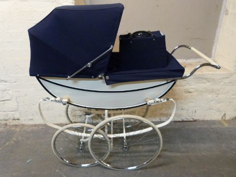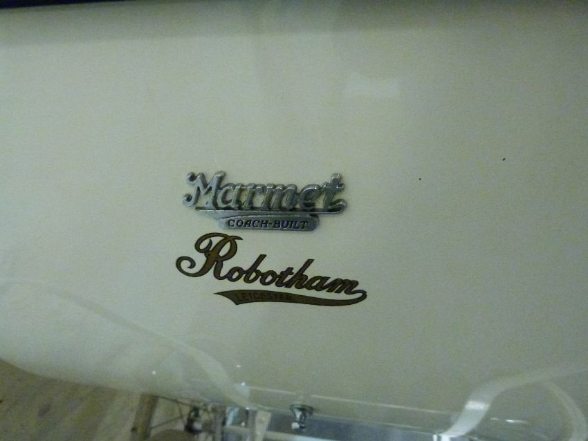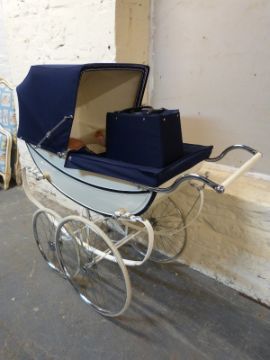 Marmet vintage pram with Robotham Leicester supplier's decal, with hood and handbrake, body 98cm