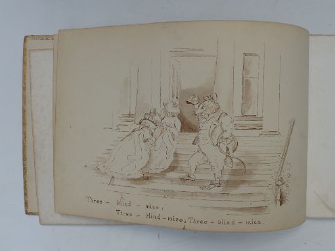 Late 19th/20th century hand drawn story book with very accomplished illustrations over 26 pages. A poem at the beginning dedicated to 'Celia', the book follows The Three Blind Mice around Kerrera, Scotland
