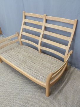 Ercol light elm framed two-seater sofa, width 134cm