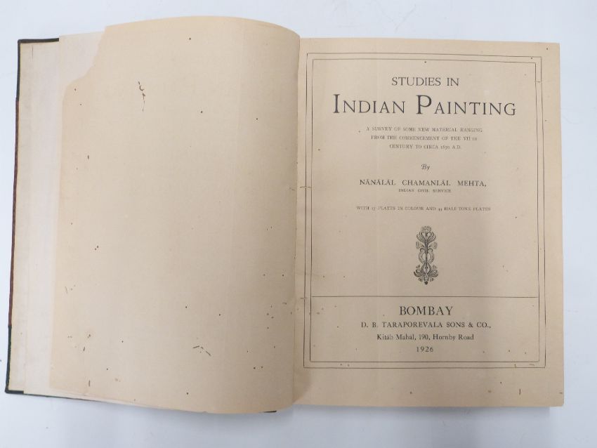 Studies in Indian Painting by Nanalal Mehta published Bombay 1926 with mounted plates in colour and half-tone, quarter leather cloth