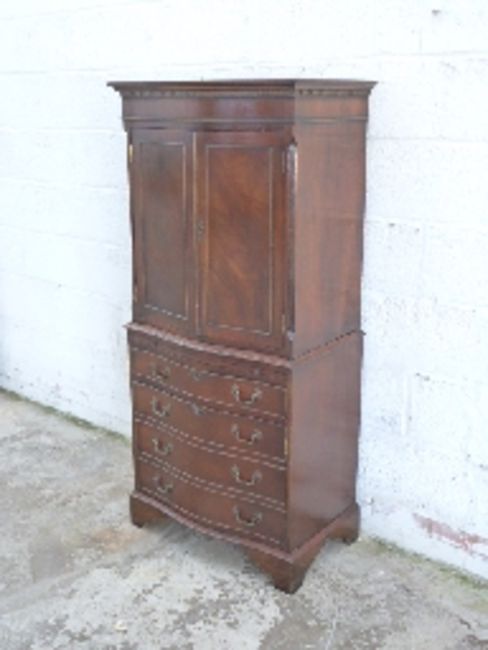Reproduction serpentine fronted chest with cupboard to top, the lower section with brushing slide, drawer and cupboard formed as three drawers, W71 x D47 x H153cm