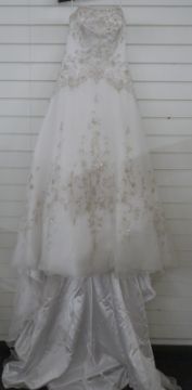 Seven various contemporary wedding dresses, new and unused