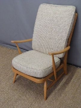 Retro upholstered armchair, probably Ercol but unmarked