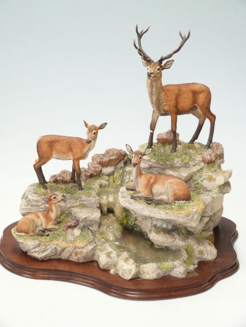 Border Fine Arts limited edition 69/500 tableau of deer on a rocky outcrop 'Monarch of the Glen' modelled by D Watton