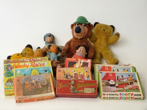 A collection of children's TV related items including Sooty and Sweep, Yogi Bear etc