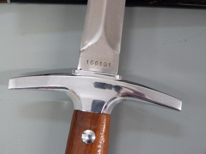 WWII Swiss dress dagger marked Elsener Schwyz Victoria to blade, serial number 166191, blade length 21cm