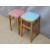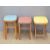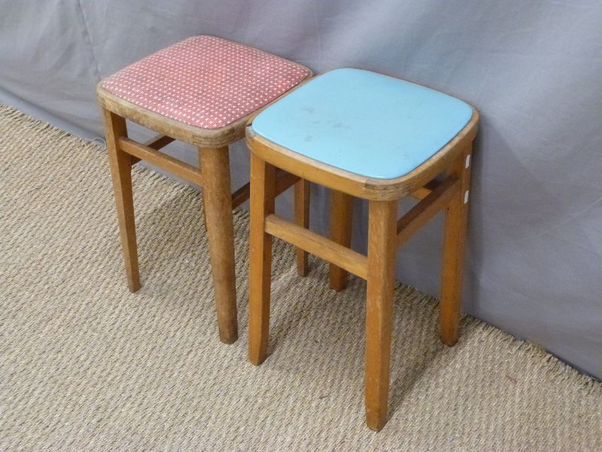 Three retro kitchen stools and two rush seated examples