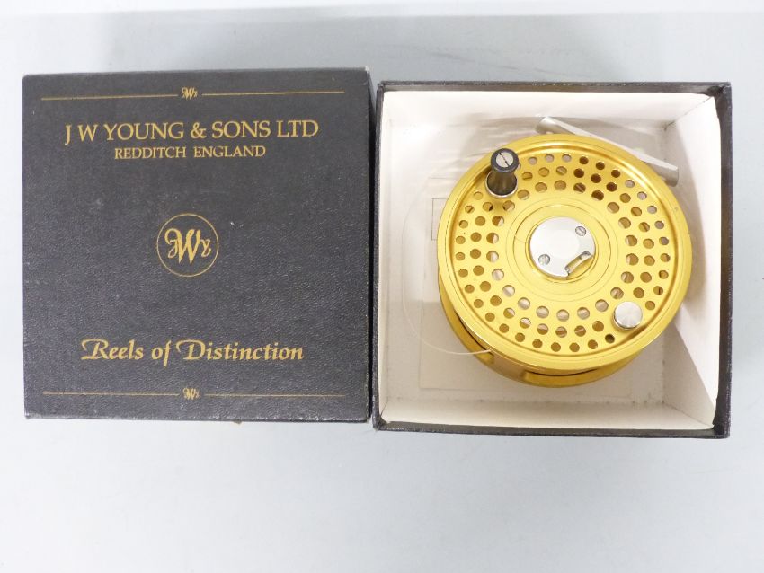 J W Young and Sons Sea Venture 3760 Saltwater fly fishing reel with 3 1/4" Large Arbor, disc drag, gold finish in original box