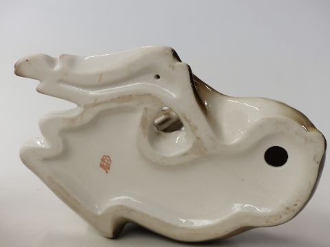 Three Lomonosov USSR figures comprising two moose, one on a rocky outcrop and a USSR figure of a magpie