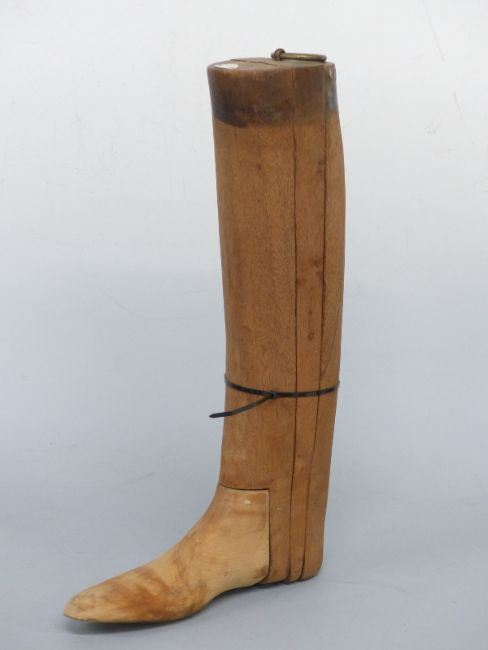A pair of vintage riding boots with trees and five further pairs of boot trees