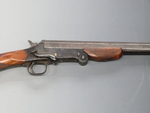 Belgian 12 bore single barrel folding hammer action shotgun with chequered semi-pistol grip and forend and 29 inch barrel, serial number 14848. PLEASE NOTE THAT A VALID RELEVANT FIREARMS/SHOTGUN CERTIFICATE IS REQUIRED TO HANDLE/PURCHASE THIS ITEM.