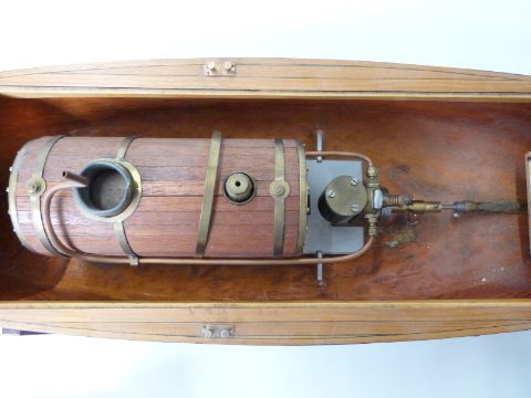 Live steam scratch built model pinnace or launch with single cylinder oscillating steam plant, length 63cm