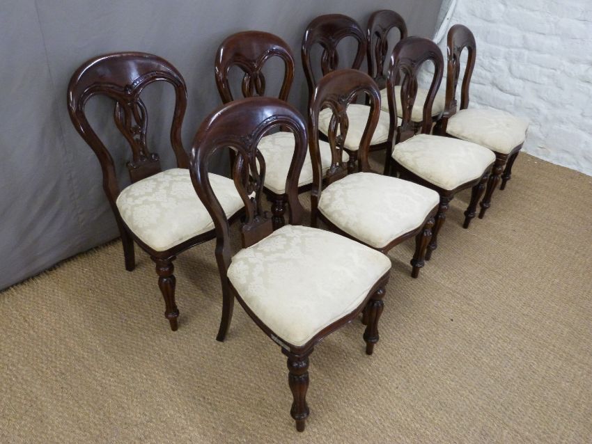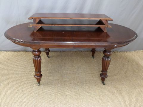 Extending dining table with two extra leaves together with a set of dining chairs with reeded bulbous legs to match