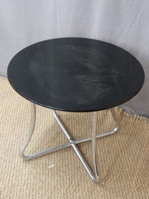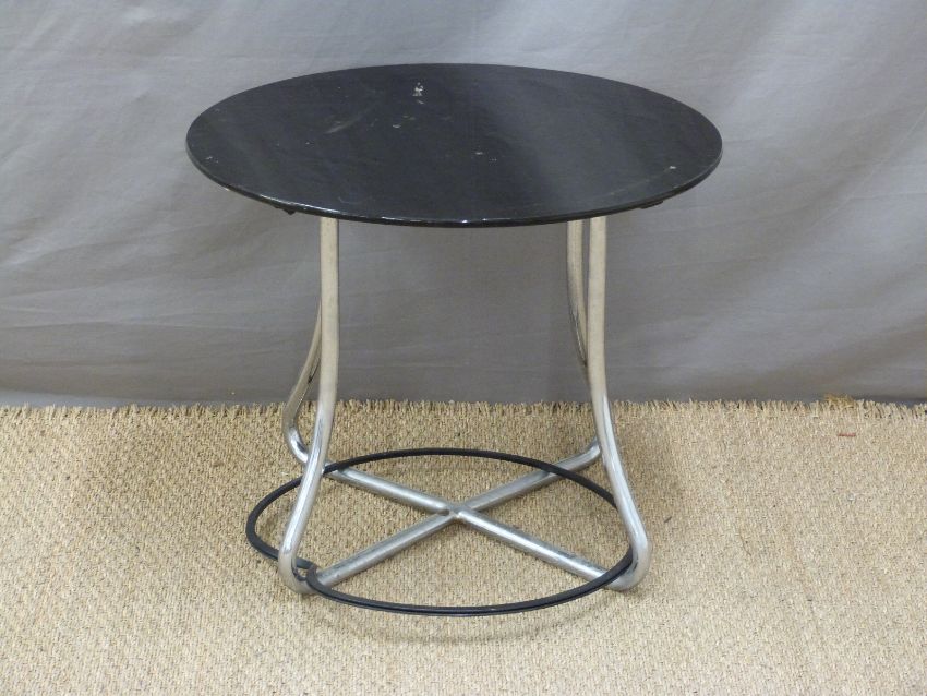PEL Limited Art Deco 1930s chrome and glass table with brass maker's plaque to base, diameter 64 x H51cm