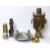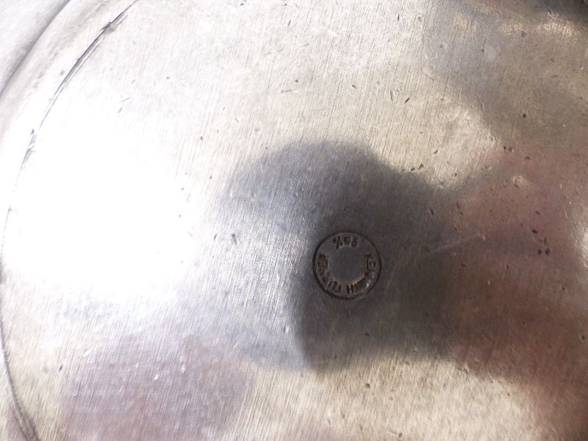 A pewter bowl with four integral candle holders, copper samovar, trench art ash tray and an Eccles type 6 miner's lamp