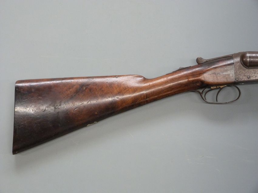 J Newark 12 bore side by side shotgun with 30 inch Damascus barrels, serial number 17208. PLEASE NOTE THAT A VALID RELEVANT FIREARMS/SHOTGUN CERTIFICATE IS REQUIRED TO HANDLE/PURCHASE THIS ITEM.