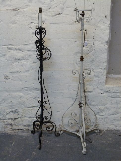 Two wrought iron standard lamps, one adjustable