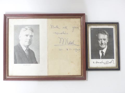 Ian Douglas Smith official black and white photograph of the Rhodesian Prime Minister, signed in ink. These photographs were available at official meetings of the Anglo-Rhodesia Society, this example was bought back from Africa by the vendor's uncle who travelled the world working for the Post Office, 14 x 9cm together with a framed book frontispiece signed and dated 1949 by Walter Nash, later Sir Walter Nash,1882-1968, Prime Minister of New Zealand 1957-1960, 20 x 25cm