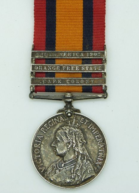 Queen's South Africa Medal with three clasps South Africa 1902, Orange Free State and Cape Colony named to 5931 Pte. G. Mortimer, Gloucester Regiment